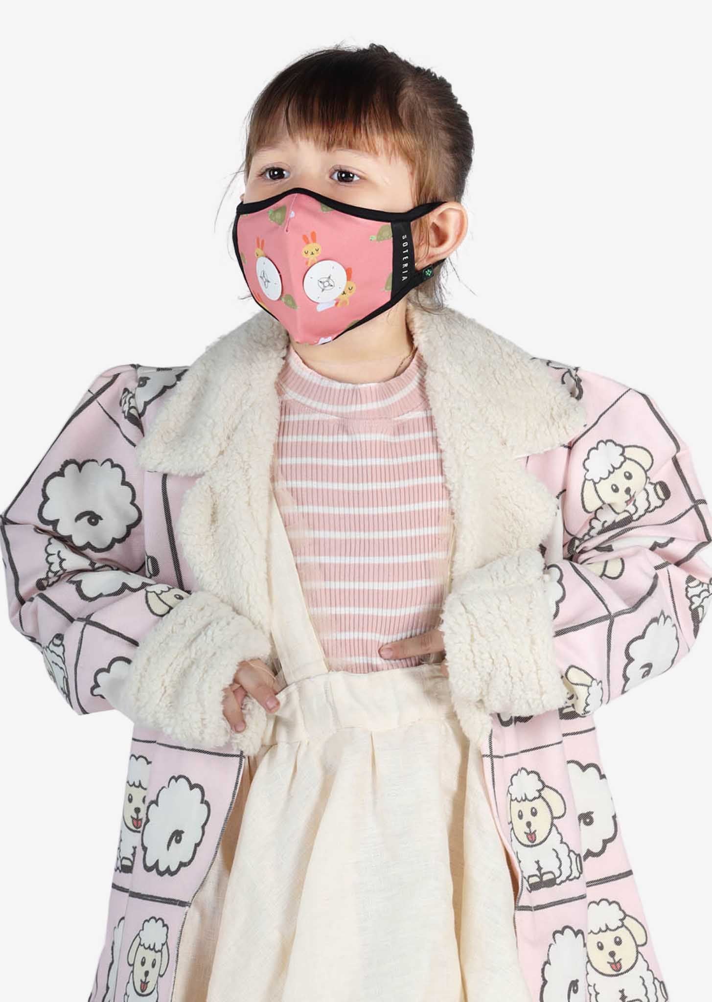 Khẩu trang thời trang cao cấp Soteria Turra ST091 tái hiện lại hình ảnh hai nhân vật rùa và thỏ trong câu chuyện cổ tích “Rùa và Thỏ” nổi tiếng. Với việc sử dụng chất liệu mực in cao cấp, an toàn cho sức khỏe người dùng, ba mẹ có thể hoàn toàn yên tâm khi lựa chọn Soteria Turra ST091 cho con yêu của mình.